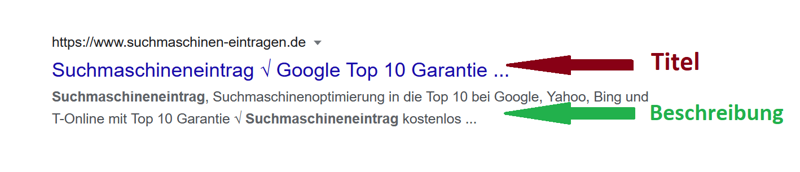 Unsere Webseite wird z.B. so bei Google.de angezeigt: